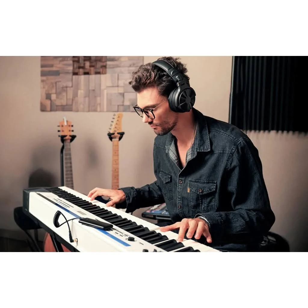 Indiferent de situație, OneOdio Studio Max 1 vă oferă libertate completă. Vă puteți conecta fără fir prin Bluetooth 5.3, puteți utiliza un adaptor (inclus) sau puteți conecta cabluri de 3,5 mm și 6,35 mm pentru un sunet analogic clasic. Acestea sunt căști care se potrivesc stilului tău de lucru și de divertisment - perfecte pentru cântat la chitară, mixaj, DJing, dar și pentru utilizarea de zi cu zi.